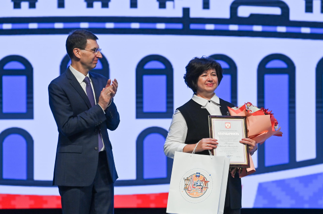 Игорь Щеголев также вручил Благодарность Президента Российской Федерации учителю средней школы № 17 города Калуги Надежде Кожушко за большой личный вклад в обеспечение деятельности образовательных учреждений в период эпидемии коронавирусной инфекции (COVID-19).