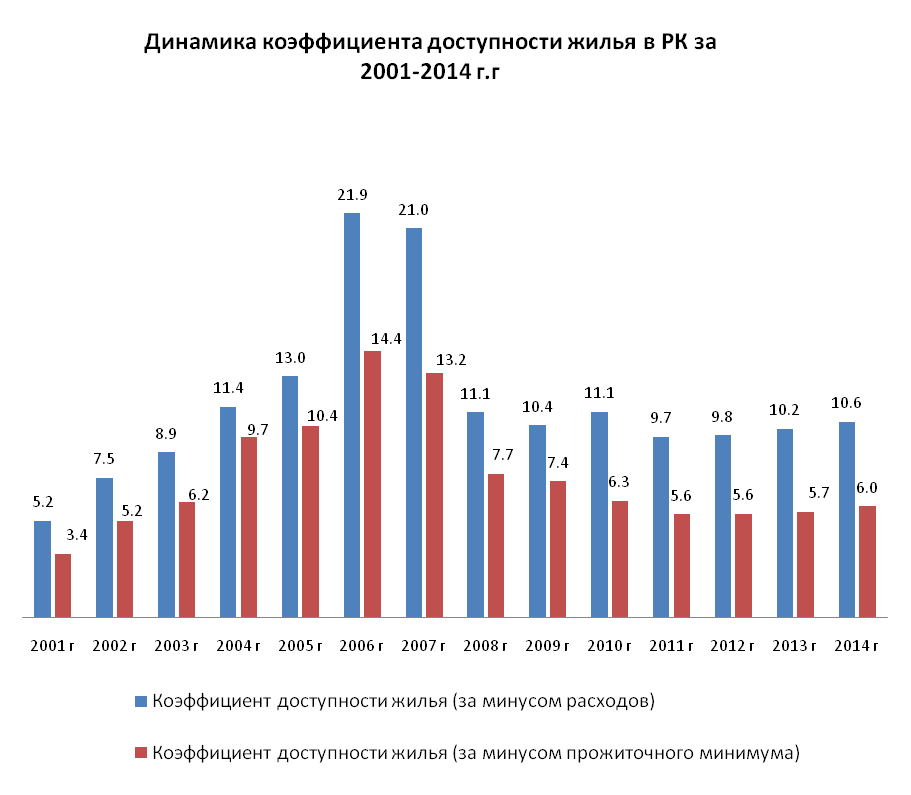 Как показывает диаграмма, динамика коэффициента доступности в нашей стране за последние 5 лет практически не изменилась, а с 2011 года ухудшилась с 9,7 до 10,6 лет в 2014 году (диаграмма 1).