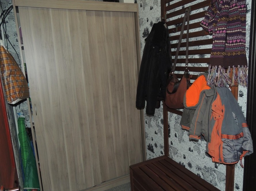 Появилась прихожая со шкафом, вешалкой и сундуком, чтобы сидеть и удобно обувать ребёнка.