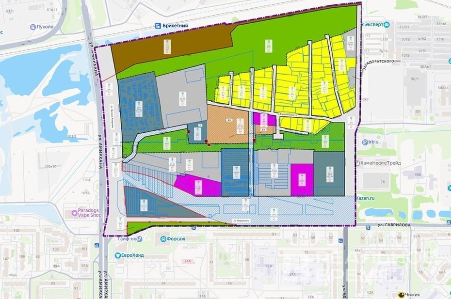 В Казани пока не утвердили проект комплексной застройки территории в Ново-Савиновском районе, расположенной между улицами Фатыха Амирхана, Михаила Миля, Адоратского и Воровского, но, несмотря на незавершенность процесса проверки, владельцы недвижимости активно начинают подготовку к продаже своей собственности. Параллельно с проведением экспертиз появились объявления о продаже гаражей в указанной зоне.