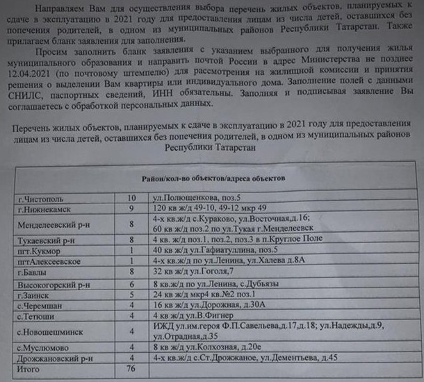 Это не единственная загадка в истории с обеспечением жильем сирот в Татарстане. К примеру, тайной за семью печатями остается реестр нуждающихся в обеспечении сирот жильем: