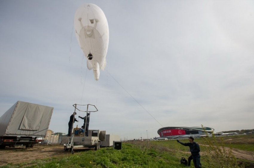 Обзор этого с виду неповоротливого гиганта составляет 360 градусов. На аэростате установлены электронно-механические гироскопы, которые позволят получать четкую картинку в радиусе 20 километров днем и ночью. Система передает картинку в режиме реального времени.