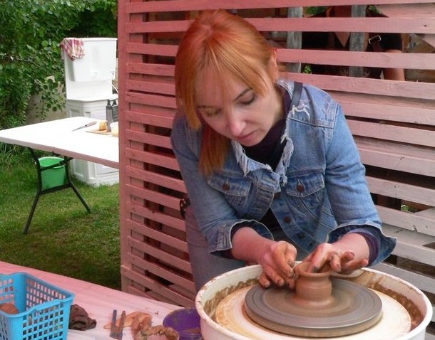 Художница Надежда Вахрушева представляет студию «Гончарики». Она не только изготавливает керамику на заказ, но и дает уроки гончарного дела взрослым и детям.