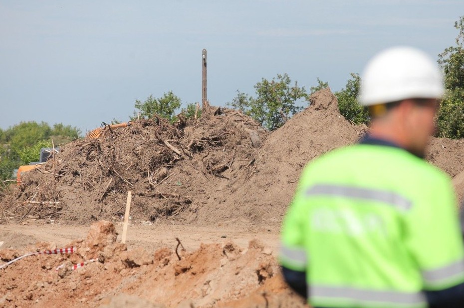 Тендер на строительство очередного участка БКК протяженностью 800 м был объявлен в начале июня. Выигравший подрядчик ООО «Мосты РТ» начал в прямом смысле сворачивать горы, даже часть подземных инженерных сетей успел переложить. Сейчас там в две смены работают 67 единиц техники и 64 человека — механизаторы.