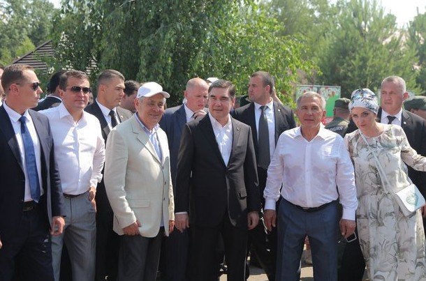 Сабантуй в Казани посетили генеральный секретарь Лиги исторических городов и представитель Киото Шигенори Шибата. Большая делегация из Туркменистана приехала во главе с президентом Гурбангулы Бердымухамедовым.