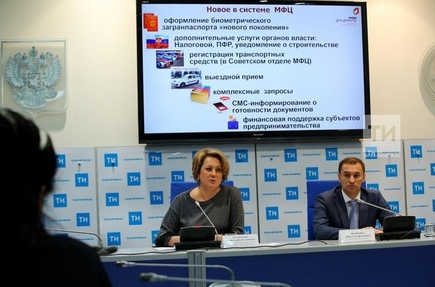 О новых услугах, которые уже предоставляют и начнут предоставлять в ближайшее время в офисах МФЦ «Мои документы», работающих по принципу «одного окна», рассказали вчера директор ГБУ «Многофункциональный центр предоставления государственных и муниципальных услуг в РТ» Ленара Музафарова и замминистра экономики РТ Айрат Шамсиев. Корреспондент «Реального времени» побывала на пресс-конференции и получила эксклюзивную информацию о новой услуге, возможность предоставления которой в МФЦ пока только изучают.