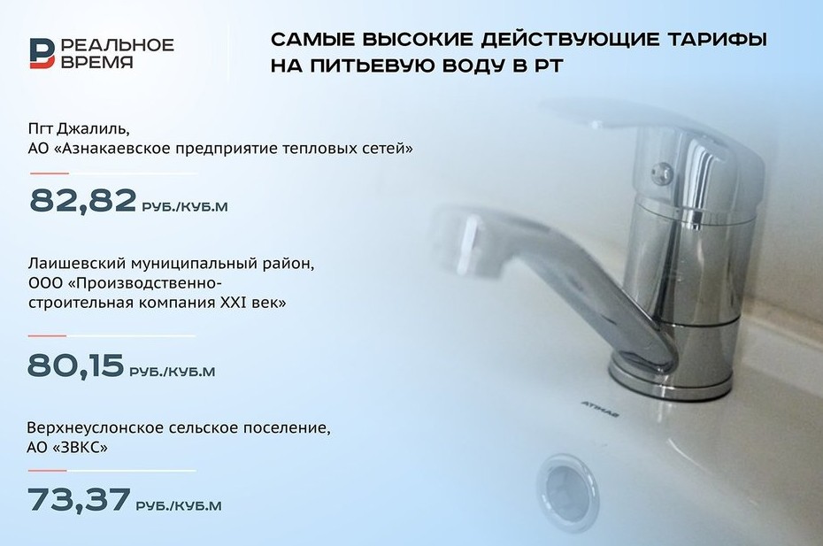 Максимально дорого — почти по 83 рубля за кубометр — обходится вода жителям поселка городского типа Джалиль, ненамного дешевле поставляет воду жителям Лаишевского района казанское ООО «Производственно-строительная компания XXI век» — по 80,15 руб. за кубометр.