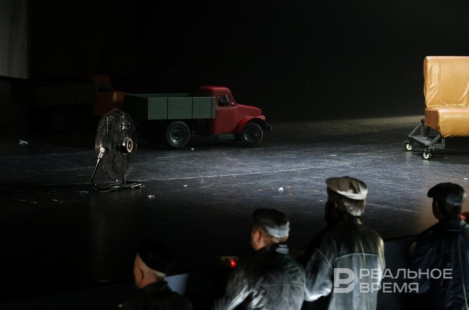Водительский коллектив — Айдар Фатрахманов, Ильфак Хафизов, Булат Зиннатуллин, Рамиль Минханов, Салават Хабибуллин, Ильмас Насретдинов — главная удача спектакля: все они в кожаных куртках, все они разного роста, курят, хрипят, травят шутки, разбираются с покрышками, но, если надо, помогут товарищу. Ездят они на грузовиках, которые изображены в виде радиоуправляемых машинок.