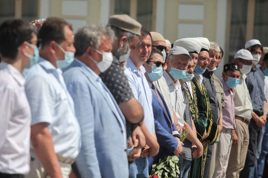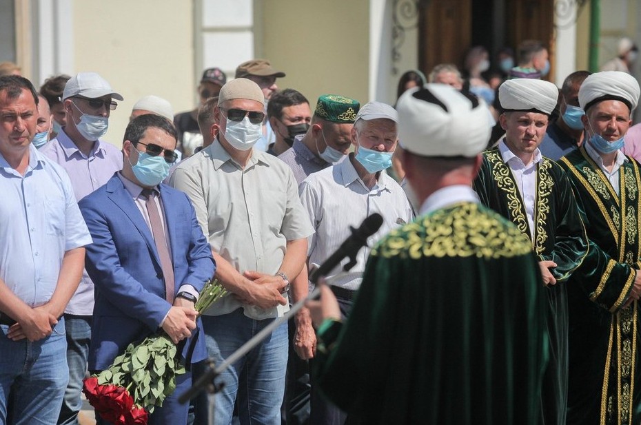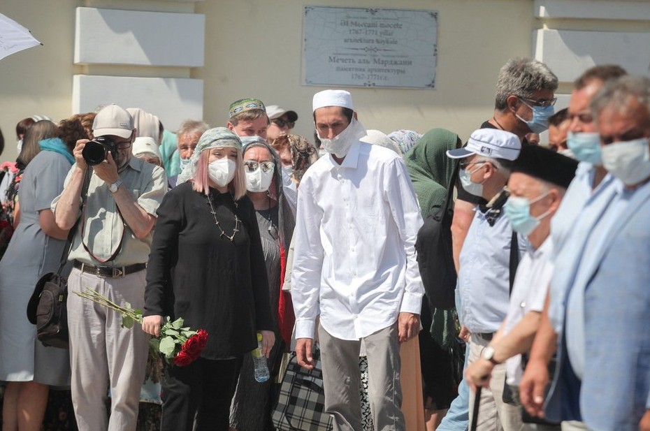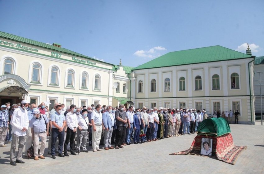 В полдень на площадке перед мечетью Марджани начали собираться люди, пришедшие проводить Фариду Забирову в последний путь. Первыми появились вице-премьер Татарстана Лейла Фазлеева, помощник президента республики Олеся Балтусова и заместитель председателя реготделения ВООПИиК Наталья Топал, которая принесла портрет с траурной лентой. К началу джаназа-намаза люди моментально заполнили внутренний дворик. Среди пришедших проститься было много чиновников и медийных персон. Мужчины заняли первые ряды, женщины разместились на скамейках в тени.