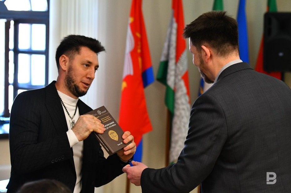 Спикер пригласил на презентацию книги певца Фирдуса Тямаева — оказывается, они встретились на съемках передачи «Таяну ноктасы» на ТНВ, и Миргалеев обещал подарить издание, если заслуженный артист РТ придет в институт: