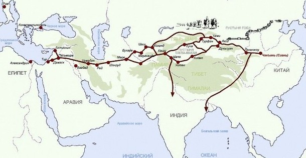 «Территория Таримского бассейна, где сейчас находится китайский Туркестан, — писал Груссе, — была центром торговли и караванных путей, и из цепей оазисов здесь образовалась линия сообщения между великими цивилизациями Запада, которые находились в Средиземноморье, Иране и Индии, и цивилизациями на Дальнем Востоке, а именно в Китае».