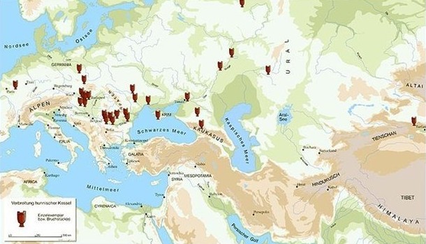 По картам находок котлов можно легко проследить основные этапы бурной истории номадов — весь долгий путь от Китая до Дуная.