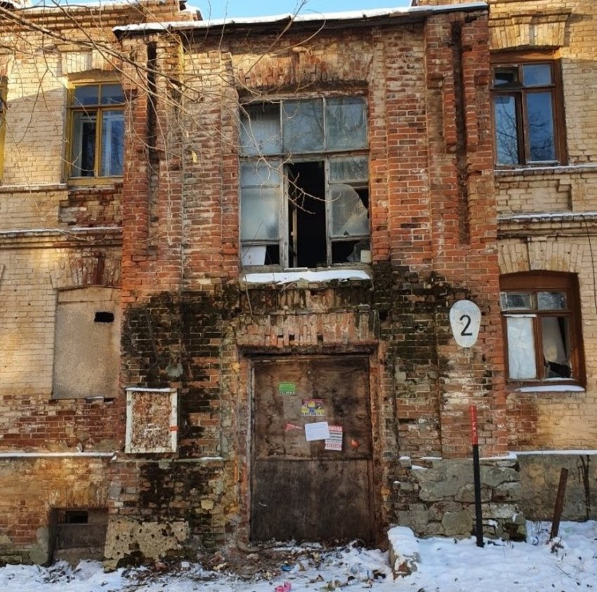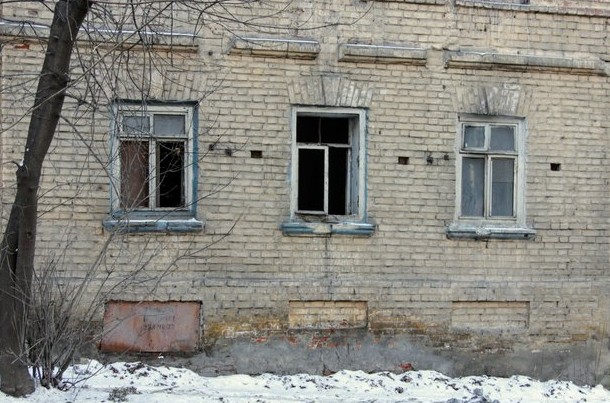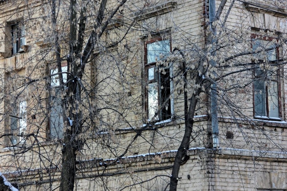 Для своего возраста он выглядел бы неплохо, если бы не следы запустения: стекла во многих окнах выбиты, рамы распахнуты и от ветра «гуляют» туда-сюда, некоторые окна забиты фанерой или заложены кирпичом