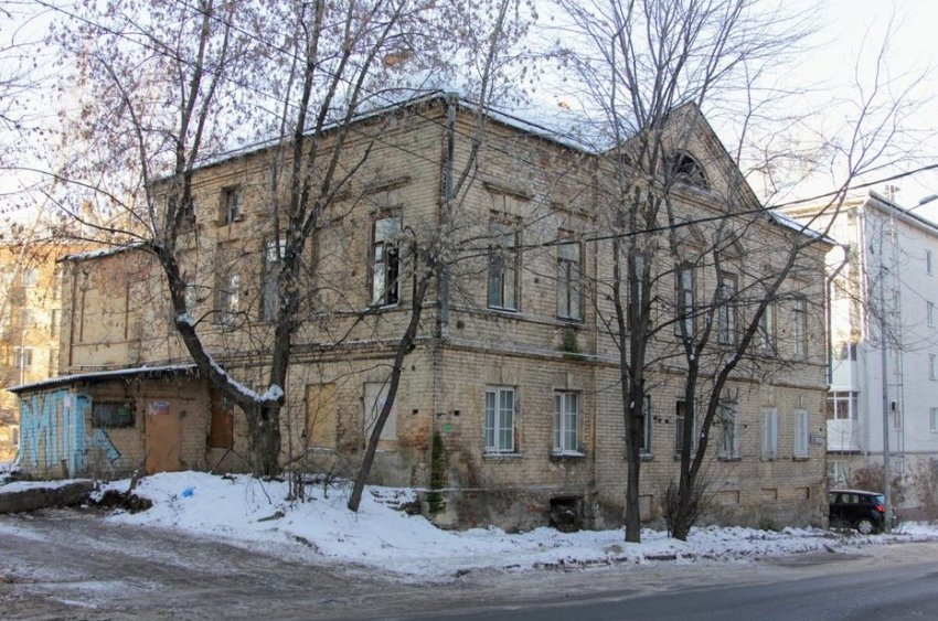 Симпатичный особнячок по улице Меховщиков, 2 со всех сторон окружен типовыми хрущевками и на их фоне смотрится особенно интересно. Историки утверждают, что это старейший гражданский дом в Ново-Татарской слободе. Для своего возраста он выглядел бы неплохо, если бы не следы запустения: стекла во многих окнах выбиты, рамы распахнуты и от ветра «гуляют» туда-сюда, некоторые окна забиты фанерой или заложены кирпичом. Часть облицовки центрального входа почернела, местами обвалилась кладка, входная дверь заколочена.
