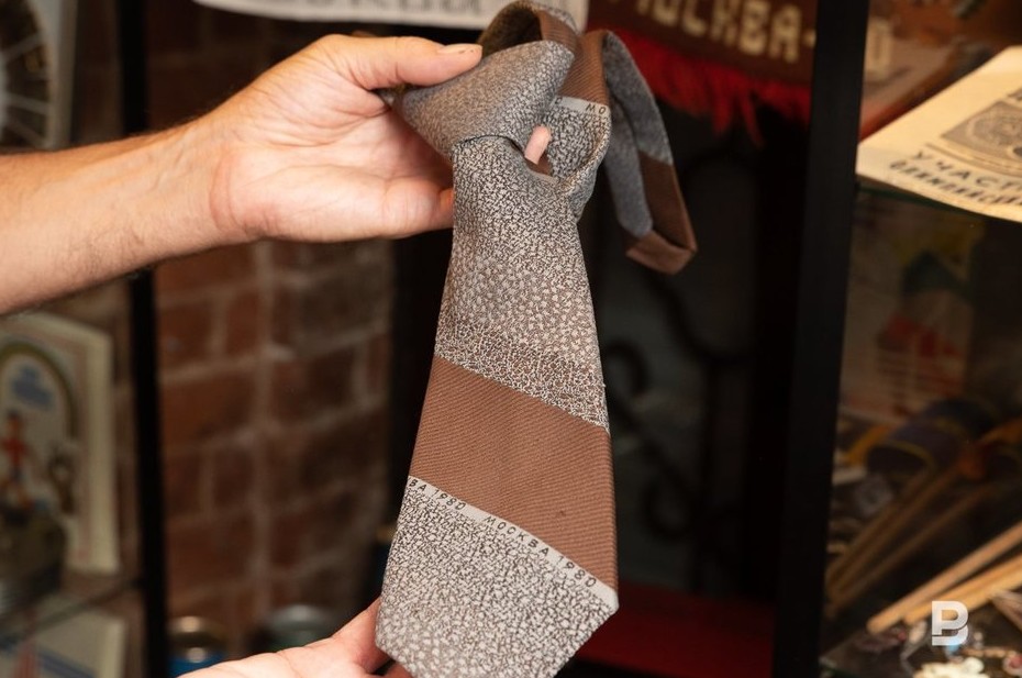 Советские жители с удовольствием носили олимпийскую символику и на себе: в музее представлены несколько галстуков с кольцами и логотипами, рубашки-батники (на которых пять колец причудливо разбросаны между узором «в индийский огурец), холщовые сумки, украшенные всевозможными медведями.