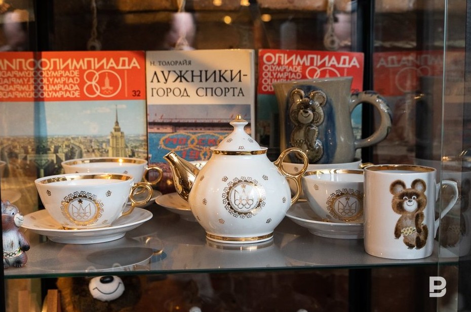 Изящный фарфоровый сервиз с логотипом Олимпиады — несколько тончайших чашек и вычурный заварочный чайник — выглядят легкими и воздушными. Его, как рассказывает директор музея, принесла одна казанская дама. Она переезжала, этот чайный сервиз оказался лишним в новом доме — и она решила сдать его музею со словами: «Здесь я его покупала когда-то — здесь, в Казани, он пусть и останется».