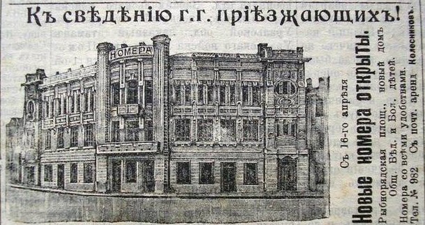 и, конечно же, «Коммерческие номера» Василия Григорьевича Колесникова (номеров в этих «Номерах» было 37), бывшие главной достопримечательностью этого дома.