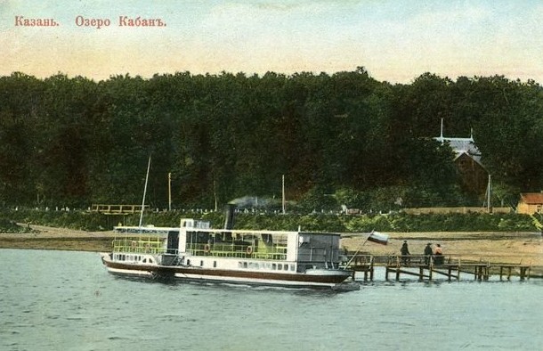 «Казань с трудом представляется без озер под названием Кабан (Нижний, он же Ближний Кабан, Дальний, на самом деле он Средний, и действительно Дальний, иногда называемый Борисковским). Все эти Кабаны вытянулись цепочкой с северо-запада на юго-восток. Протяженность доступных для судоходства Нижнего и Среднего Кабанов составляет более 5 с половиной километров. Моей задачей не является описание озер с естественно-исторической и культурно-исторической стороны. Задача гораздо уже: рассказать вкратце о пароходстве по этим озерам как о чисто казанском явлении — о пароходах, рейсирующих по внутригородским озерам в других городах России, мне читать не приходилось.