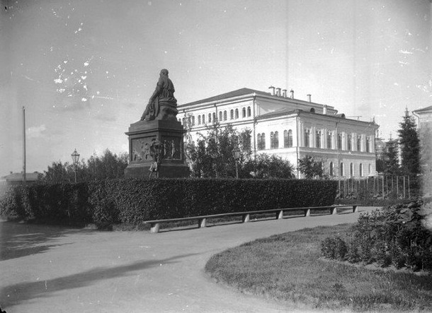Последнее здание городского театра отреставрировали после пожара в 1875 году. Оно было больше, чем два предыдущих, играли в нем и оперу, и драму попеременно. Три года, с 1897 по 1900-й, здесь работал Качалов. А напротив, на том месте, где сейчас стоит Казанский оперный театр, был разбит красивый сквер — Державинский сад. Стоял в нем, соответственно, памятник Державину, который смотрел прямо на театр: