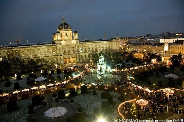 Сама же площадь Марии-Терезии со знаменитым памятником любимой австрийцами императрице, «бабушке всей Европы», стала местом рождественского базара. Впрочем, это далеко не главный праздничный базарчик столицы, центральный же находится неподалеку и отличается только масштабами, но не предлагаемыми товарами.