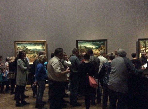 Для того чтобы пройти контроль, перед входом в вестибюль надо простоять в толчее минут 15—20. Затем пережить толпы людей практически у каждого полотна — просто так к картине не подойдешь. Поэтому, если вы приехали не просто отметиться, что «были на Брейгеле», меньше 4—5 часов на осмотр экспозиции не уйдет. Мы провели в музее 5 часов. В первые дни выставки разрешали фотографировать в залах, сейчас этого нет, просят не отвлекаться на фотографии и проходить как можно быстрее — людской поток напирает.