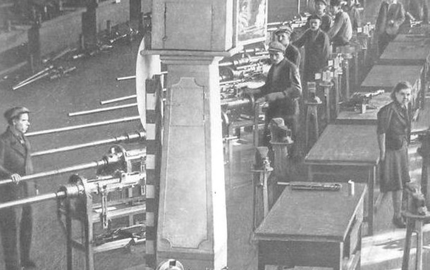 «В начале ноября [1941 года] в Ижевск были доставлены чертежи, техническая документация, часть заготовок деталей. Прилетело сюда и несколько специалистов, освоивших производство ПТР. Вскоре и здесь начался массовый выпуск противотанковых ружей Дегтярева, — писал в своей книге «Во имя Победы» Дмитрий Устинов. — Сложнее было организовать производство противотанкового ружья Симонова. Его выпуск, наряду с другими предприятиями, мы поручили заводу, где до войны изготовляли запасные части к автомобилям и тракторам. Сюда было направлено свыше трехсот станков с других оружейных заводов. <…> Одновременно налаживался выпуск этих ружей и на заводе, который возглавлял М.А. Иванов. Производство ПТР развертывалось в специально построенных для этого деревянных корпусах. Размещены они были… на бывшем картофельном поле. Оно было буквально исполосовано транспортом, доставлявшим сырье, материалы, детали и узлы в цеха. Сами цеха представляли собой большие бараки, вдоль центральной оси которых располагались по три больших железных бочки, приспособленные под печки. От них к крыше тянулись жестяные трубы. И все это нещадно дымило, так как топить приходилось древесными отходами, как правило, сырыми и не очень горючими. Рабочие места у станков освещались самодельными коптилками, которые, конечно, свежего воздуха в помещениях не добавляли. И в таких условиях люди не только выполняли, но и перевыполняли нормы изо дня в день, из месяца в месяц. Работали, как воевали, — не считаясь с трудностями и лишениями, не щадя себя».