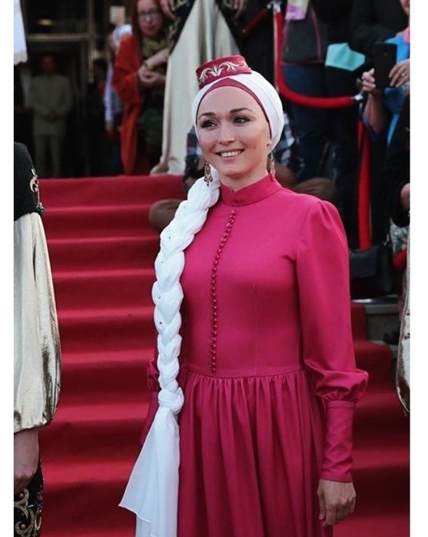 — Бу образ күптән туды. Әнием Кәүсәрия Галиуллина «Кәүсәр» мөселман брендынын дизайнеры. Ул миңа бу күлмәкне 19 гасыр татар киеменә охшатып текте. Яулыгын, «толым»ны мин үзем уйлап чыгардым. Гел шулай, яулыкны үреп, милли чигүле калфак киеп йөрергә яратам. Образ заманча һәм тарихи. Буыннар бердәмлеге дип аңларга кирәк.