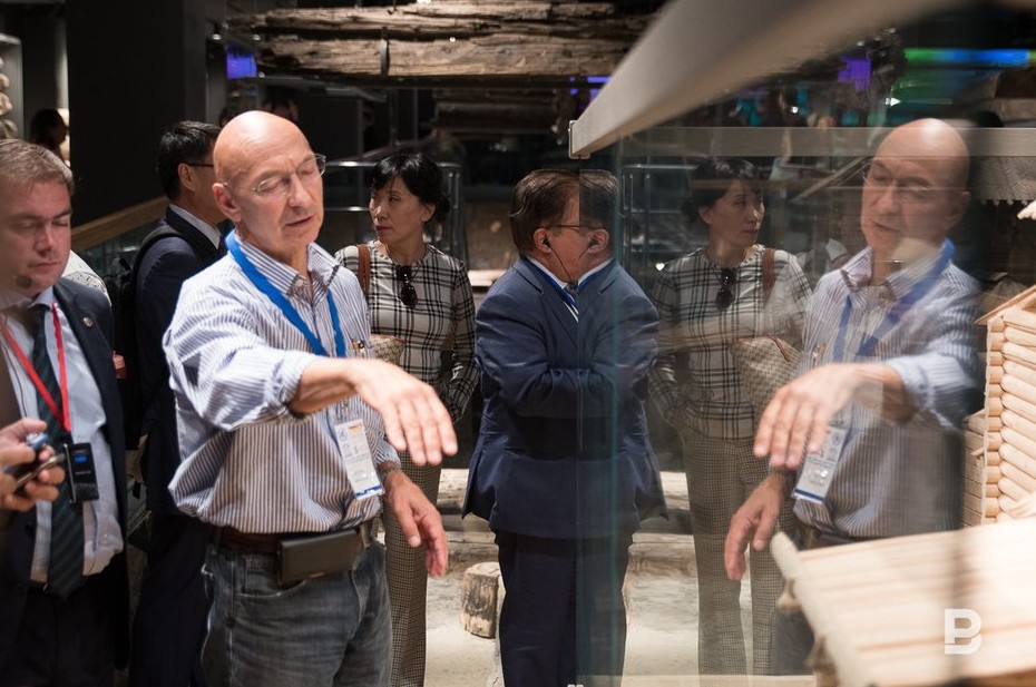 Первыми гостями музея археологического дерева стали участники Казанского форума по межкультурному диалогу. Естественно, первое слово на открытии предоставили Государственному Советнику Татарстана, специальному посланнику ЮНЕСКО по межкультурному диалогу Минтимеру Шаймиеву.