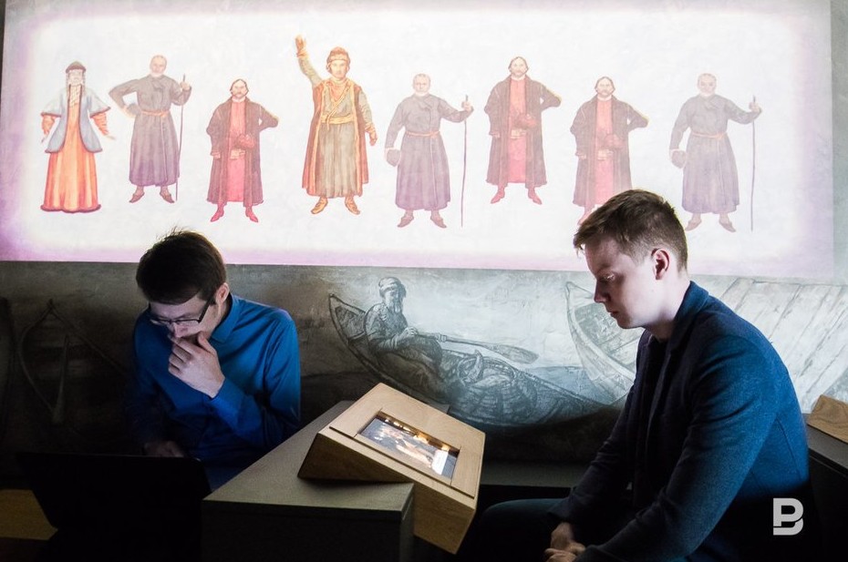 Ребята из «Самруха» также придумали интерактивную зону под названием «Стань свияжцем». После выбора пола, места, где вы хотели бы жить, и сословия, нужно сфотографироваться. Все данные вносятся в систему, на выходе из музея камеры сканируют лицо и, найдя совпадения, отображают вас в определенном облике средневекового свияжца на проекторе. Идея предполагает, что посетители покинут музей, оставив в нем жить свою маленькую цифровую копию.