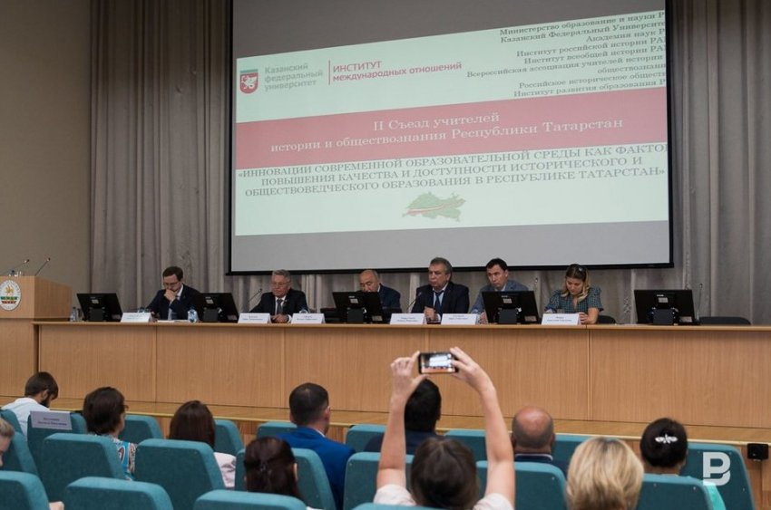 Второй съезд учителей истории и обществознания Татарстана собрал 700 специалистов. Мероприятие проводится под эгидой КФУ. Выступая с приветственным словом, ректор вуза отметил, что КФУ — главный поставщик учительских кадров и готовит преподавателей по всем школьным предметам, вкладывая в них «всесторонние знания, эрудицию, инновационное мышление», ну и про насущное не забыл.