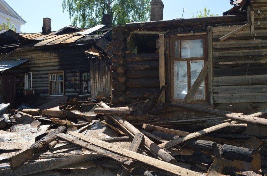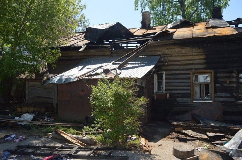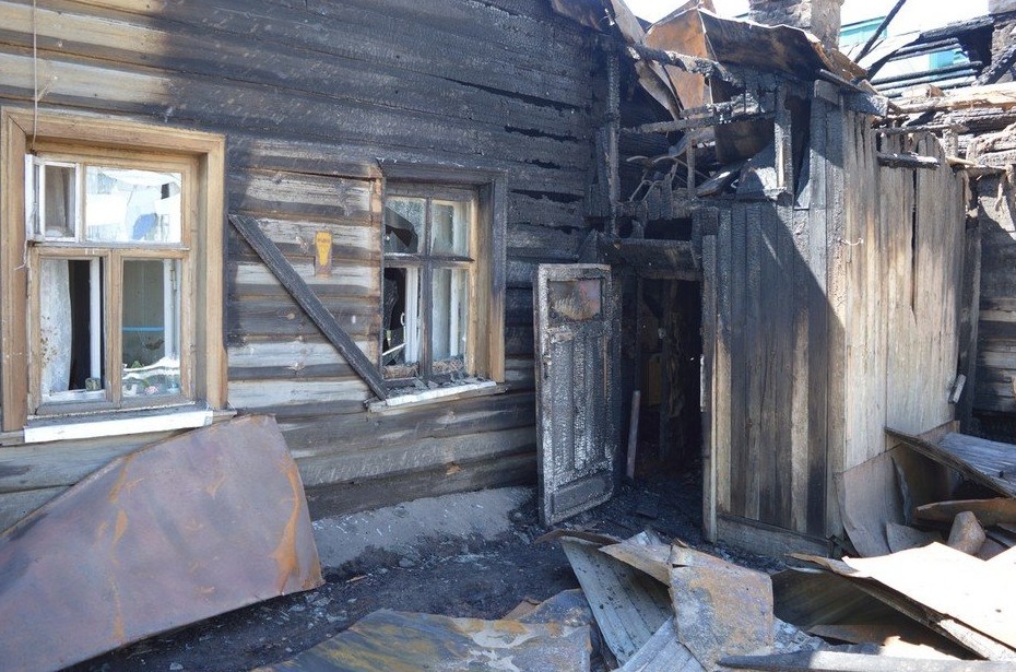 Сегодня деревянное здание выглядит плачевно, часть дома почернела после пожара. Хотя по фасаду не скажешь, что дом горел, стоит заглянуть в распахнутые окна и двери, и становится понятно, что от огня пострадало все внутри. Одну из жительниц удалось застать на месте — женщина пришла, чтобы разобрать вещи.