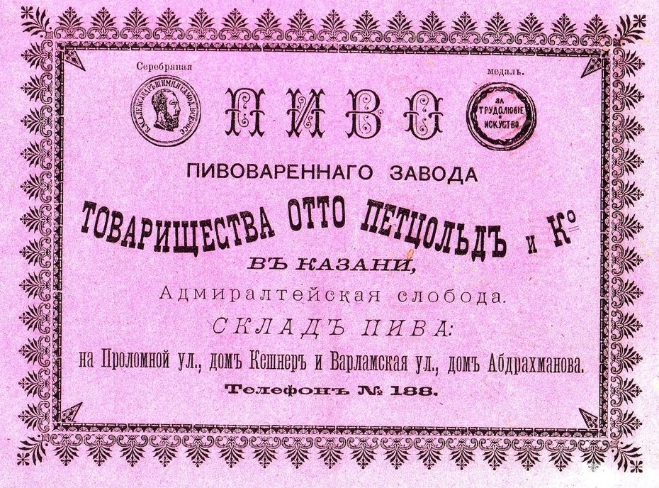 Пивовары-немцы, собственно и создавшие правильное пивоварение в России, не миновали и Казани. Старый дом на углу улиц Баумана и Астрономической может считаться самым немецким домом Казани: он последовательно переходил от одного немецкого владельца к другому. Владело им и семейство Петцольдов.