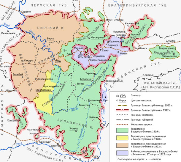 На обложке школьного учебника по истории РБ (автор — некогда декан исторического факультета БГУ, доктор наук и профессор Марат Кульшарипов) размещено несколько дат — как самых главных за ХХ век! Это: образование советской республики, переименование ее в Башкортостан, выборы первого президента, открытие Всемирного курултая и т. д. Год «расширения границ» в этот почетный ряд не вписался. Хронология такова, что за 1919-м сразу наступают 1990-е…
