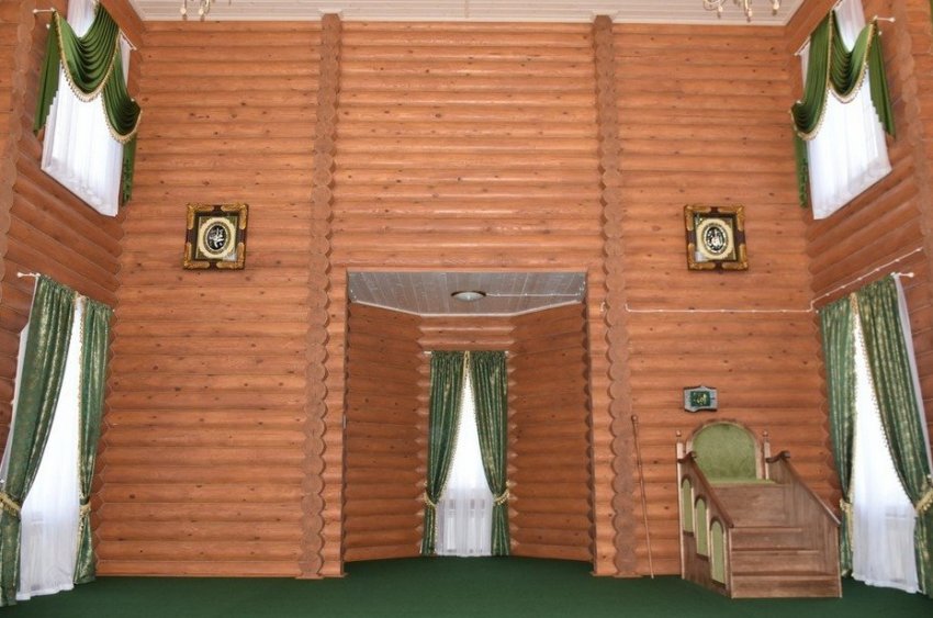 — Внутри нее одновременно могут молиться 100 человек, а на ее территории, на внешней площадке — 500. Итого — на 600 молящихся. Это двухэтажная деревянная мечеть. Второй этаж — для женщин.