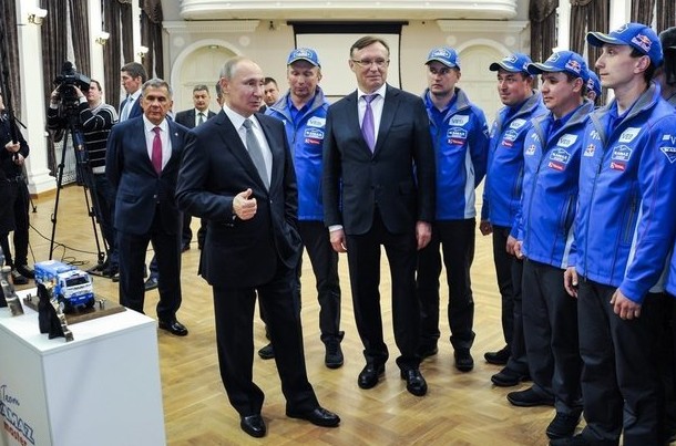 Еще одним эпизодом в программе пребывания Владимира Путина в Казани стала встреча с триумфаторами «Дакара-2018», легендарной командой «КАМАЗ-мастер».