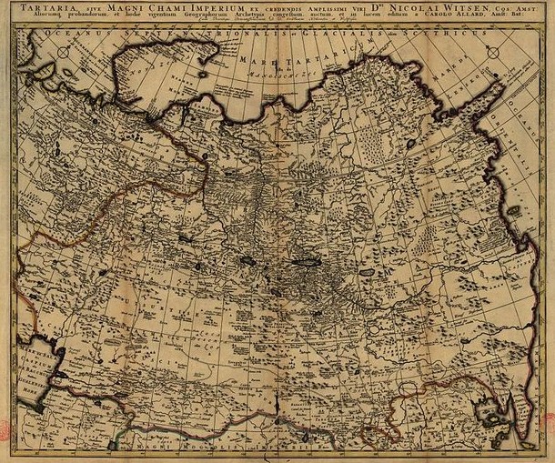 Н. Витсен описывал крымских татар как монголоидов, одетых в овечьи шкуры. Отмечалось, что они практиковали работорговлю, а армяне, евреи, арабы и греки должны были платить дань за пребывание в ханстве. Земли и виноградники обрабатывались рабами. Отмечалось, что они ведут строгий образ жизни и повинуются своим ханам. Говорилось, что в поход на город Конотоп выступило 80 тыс. (реально 30 тыс.) воинов, а при надобности могут поднять на войну 200 тыс. (что, безусловно, преувеличение, максимально крымцы могли выставить 40 тыс., в даже больших походах их было 20—30 тыс.). Отмечено, что татары являются данниками турок и что хан прибывает из Стамбула, но хан назначает своего наследника. В стране Крым семь городов (в источнике — Криминида (Эски-Кырым), Карасу (Карасубазар), Каффа, Бахчисарай, Гиуслене (Гезлеве), Балухелава (Балаклава), Кирче (Керчь)), но оседлый образ жизни они воспринимают как проклятие. Каффа находится под турецкой властью. Они пьют кобылье молоко и конскую кровь. Среди них много похожих на европейцев вследствие того, что в Крыму осталось много поляков и лифляндцев, крымцы являются смешанным народом. Война является их основным занятием и многое татары делают на конях. В 1571 г. они предприняли ужасное вторжение в христианские страны (имеется в виду вторжение, приведшее к взятию крымцами Москвы, Николас Витсен ссылается как на источник на Геклюйта). Крымцы — правоверные мусульмане и очень набожны. У них обычно многоженство, каждый берет столько жен, сколько может обеспечить. У хана пять дворцов-сералей, которые пышно обставлены. В Бахчисарае 2 тыс. домов, а город не имел стен (как типичный город кочевников). Отмечено, что хан называет себя правителем Великой Тартарии, ногайцев, черкесов. Язык татар — это испорченный турецкий. Он говорил, что крымские татары являются врагами астраханских и волжских татар. Сражаются крымские татары отрядами в несколько тысяч каждый (Witsen).