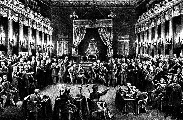 Пытаясь придать легитимность своему правлению в Царстве Польском, Николай все же решился короноваться польским королем, как было положено по Конституции Царства Польского. Но коронация, демонстративно проведенная не так, как того требовали польские коронационные правила и традиции, стала крайне неудачным и провоцирующим жестом. Пройдет совсем немного времени, и 25 января 1831 года в том же зале Сената в варшавском замке, где проходила коронация, будет подписан документ о детронизации Николая.