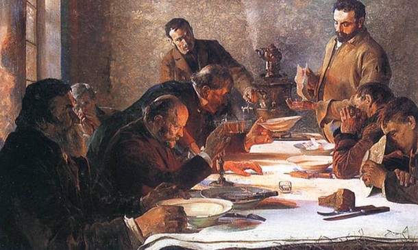 Редко кому из ссыльных удавалось найти работу. Суммы же, выдаваемые на пропитание были смехотворны, да и тех денег зачастую надо было добиваться настойчивыми и унизительными прошениями. Несмотря на все лишения, ссыльные старались не терять духа и надежды. Взаимопомощь была необходимым условием выживания в неволе. Очень большую роль в жизни ссыльных поляков играла религия и связанные с ней обычаи. Полотна известного живописца Яцека Мальчевского показывают эпизоды из жизни ссыльных поляков. «Смерть на этапе» не нуждается в пояснениях. «Вигилия в Сибири»: вигилия — ночное бдение у католиков перед Пасхой или Рождеством. Стол убогий: ничего, кроме чая со щепотью сахара. Но все собрались и даже по возможности приоделись.