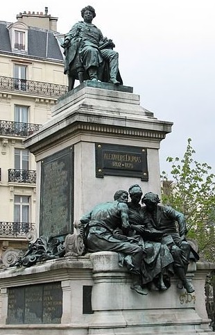 3 ноября 1883 года на парижской площади Мальзерб был открыт памятник Александру Дюма-отцу, выполненный по проекту французского художника-графика Гюстава Доре. В скульптурной композиции на вершине подобной гранитной глыбе сидит Дюма с улыбкой на устах. У его ног с одной стороны расположились студент, рабочий и девушка с книгами в руках, а с другой, — присев на цоколь, несет свой караул Д`Артаньян.