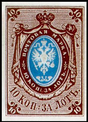13 января 1858 года в обращение поступила первая российская почтовая марка. До этого в России применялись конверты городской почты Санкт-Петербурга, поступившие в обращение в 1845 году. Они использовались в Москве, Варшаве и Казани. В 1848 году появились конверты для иногородней почты. Первая российская марка была маленькая — всего 2 х 2,7 сантиметра, ничем не примечательная, коричневого цвета с синим овальным центром, без зубцов. Внутри овала был герб Российской империи белого цвета. На письмо приходилось клеить по несколько марок.