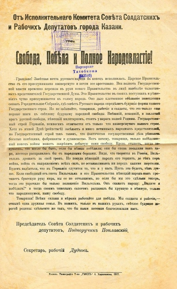 Как в результате двух с половиной лет войны из деревни вытянули до 40—50% рабочей мужской силы, взвинтили цены на жизненные припасы, лишили рабочего скота, сократили посевную площадь, снизили потребление — описывает в своем очерке о крестьянских движениях в Казанском крае в 1917 году историк-архивист начала XX века Евгений Чернышев. Ученый описывает бедственное положение сельчан, серия его статей представлена в книге «Народы Среднего Поволжья в XVI — начале XX века». Издание выпустил коллектив авторов Института истории им. Марджани*.