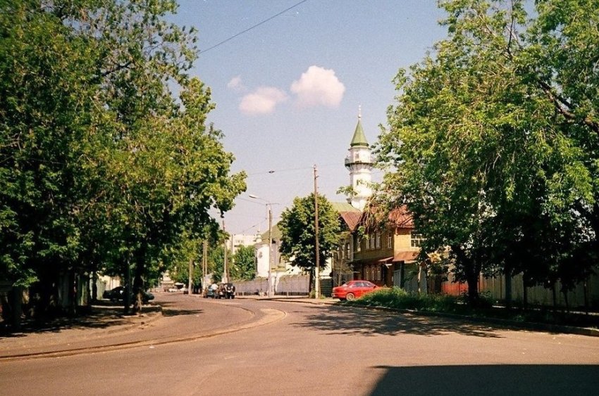 Слева виднеется кинотеатр имени Тукая. В 1925 году на этом месте открылся кинотеатр «Чаткы»/«Искра», в репертуаре ориентировавшийся на местных татар с соответствующей тематикой, татарскими субтитрами, а если нужно — устным переводом. Имя Тукая он получил в 1951-м, в 1968-м построили здание в стиле советского модернизма, которое к началу нулевых сильно обветшало. Но помнится, здесь показывали некоторые фильмы первого фестиваля «Алтын минбар» в 2005-м. Зато здесь были более дешевые билеты, к примеру, по сравнению с «Татарстаном» на Баумана.