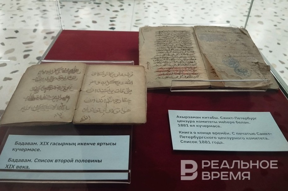 Дополняли небольшую выставку книги из коллекции библиотеки. Среди них — религиозно-дидактический труд «Бәдәвам» второй половины XIX века, «Ахырзаман» о конце света 1881 года (с печатью цензурного комитета). Или, например, собрание стихов по суфийской этике.