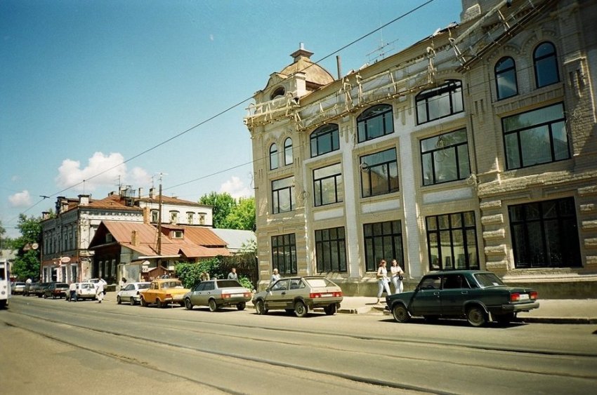 Как можно увидеть, и 20 с лишним лет назад, и сейчас в здании работает общепит. Сейчас дом приобрел единообразие в цвете.