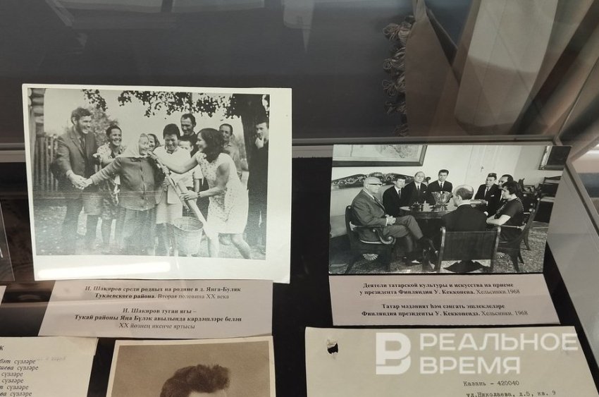 В музее можно увидеть фотографии разных периодов жизни певца. К примеру, встречу татарских артистов в Хельсинки, где их принимал президент Финляндии Урхо Кекконен. Тогда за границу также поехали скрипач Марат Ахметов, баянист Марс Макаров, певица Венера Шарипова, мастер художественного слова Айрат Арсланов, композитор и пианист Рустем Яхин. Последний в письмах сообщал, что поездка далась ему нелегко: постоянный контроль, встречи. Отметим, что Шакиров на фото единственный, кто надел тюбетейку.