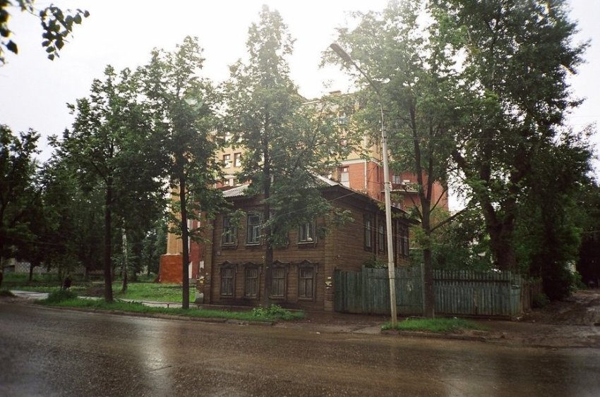 Слева же стоял дом постройки 1896 года, которым владела, некая Анна Ивановна Александрова, а также жил философ Виктор Несмелов, преподаватель Духовной академии и отец революционера Валентина Несмелова, убитого в Раифском монастыре, куда он отправился реквизировать церковные сокровища.