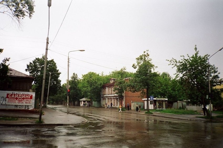 Это адрес шестиэтажного дома, который построили в 1998-м. В наши дни выше справа появились два его собрата. А на месте деревянного здания проходит поворот на Ершова. Можно сказать, что эта часть улицы стала жертвой расширения трассы.