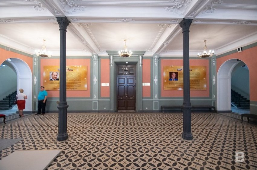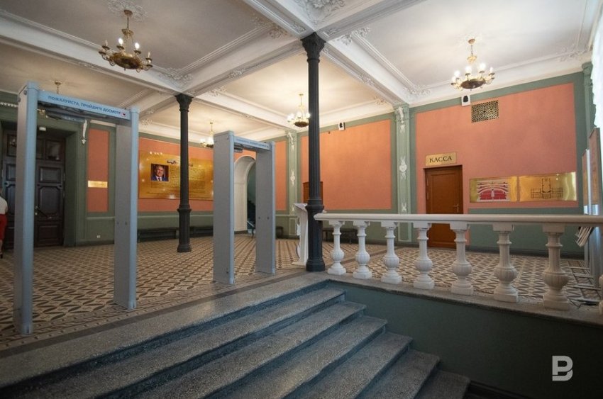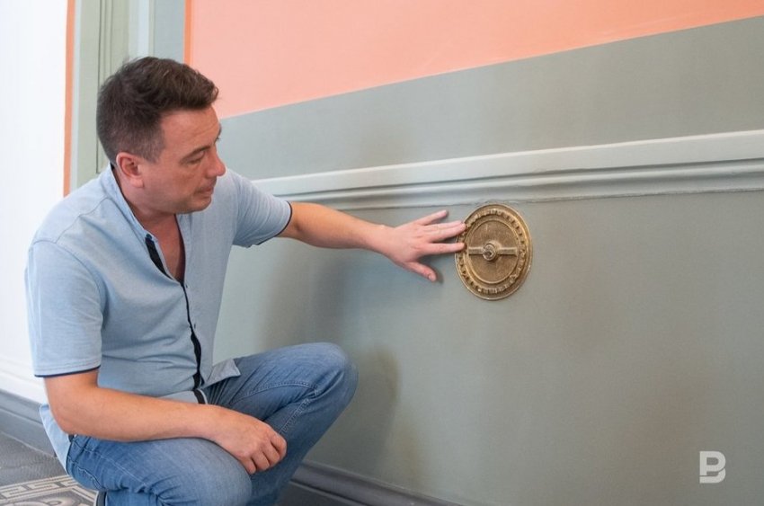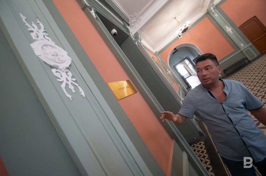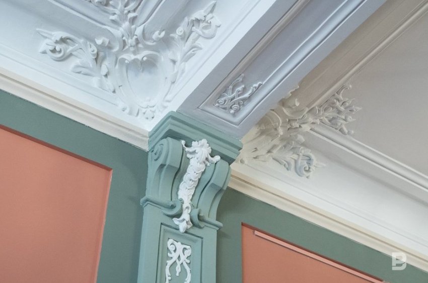 — Цельных родных декоров в здании не сохранилось, значительную часть в советское время снесли, чтобы сделать кинозал. Интерьеры восстанавливались «по мотивам» убранства казанских домов XIX века. Но обратите внимание на лепнину в центральном фойе — гипсовые узоры на стенах, казалось бы, выполнены несколько неаккуратно. Однако реставраторы приняли решение их сохранить. Дело в том, что делали эти украшения не профессионалы, а простые рабочие льнокомбината в 20-е годы прошлого века, но со старанием и любовью. Так что такое решение современных мастеров вполне оправдано, — раскрыл секреты Тимур Муртазин.