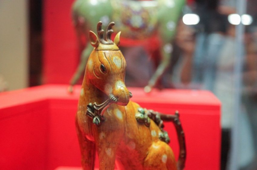 Слоны же являются символом мира, спокойствия и процветания, достатка и богатства не только в отдельной семье, но и по всей стране. На экспозиции об этом рассказывает пара алтарных ваз в виде слонов. Они сделаны из бронзы с чеканкой, патиной и гравировкой при династии Цин в XVIII веке.