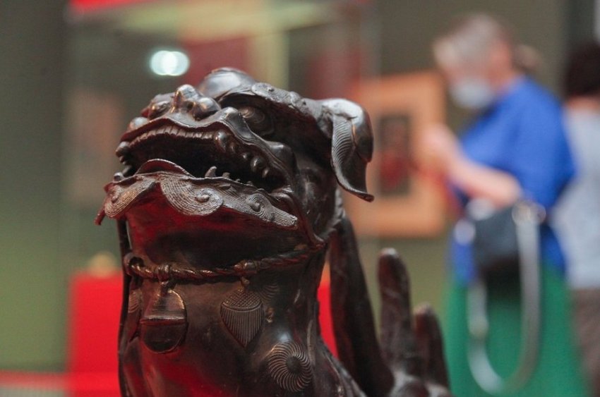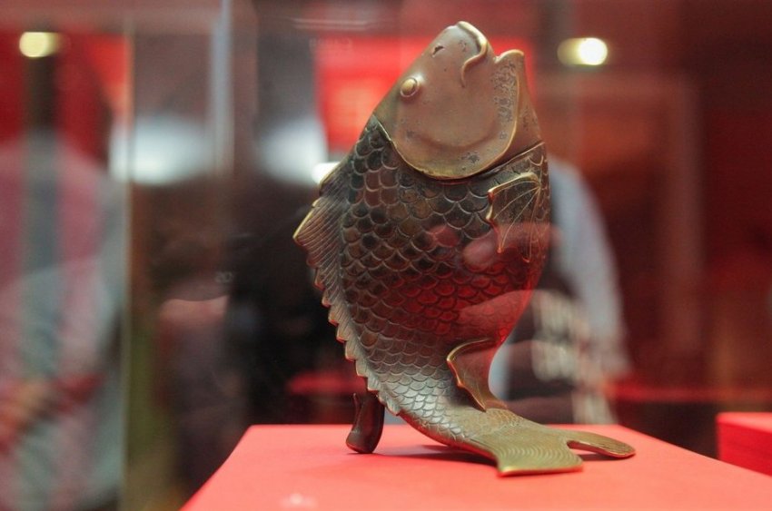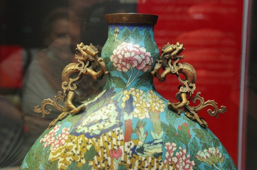 На самом деле всего не перечислишь — есть и мебель, и фронтальный коврик для праздничного стола, и напольный двухсторонний экран, инкрустированный стихами одного из императоров, и изящные стаканчики для полоскания кистей, вазы-фляги и свадебные наряды знати... Однако стоит остановиться на забавной трехлапой жабе из бронзы XVI-XVII веков. Эту фигурку из бронзы мастер во времена династии Мин сделал одновременно и курильницей, и копилкой. А недостаток конечностей у нее — для смеха. Во всяком случае как рассказывает поясняющая литература.